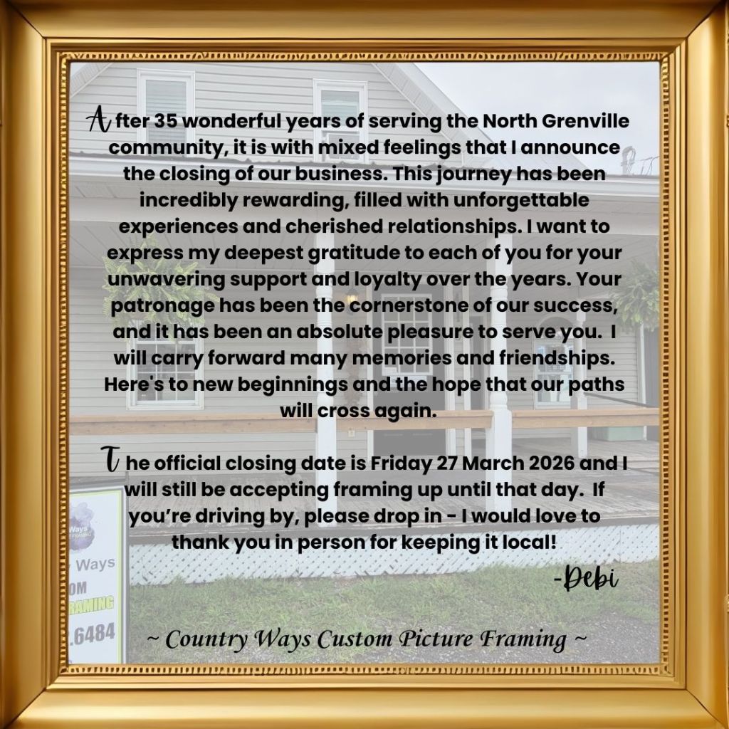 Country Ways Framing has been offering creative, quality custom picture framing in North Grenville and area since 1991.